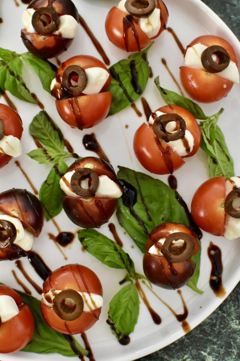 Whip up these Halloween Caprese Bites from SnapFoodie.com for a treat your guests will die over!